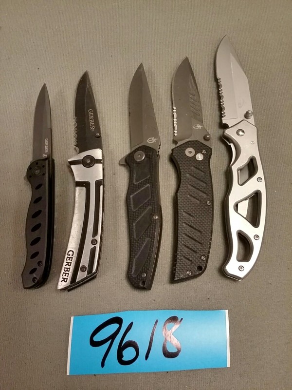 Description: Lot consisting of 5 each Gerber pocket knives.