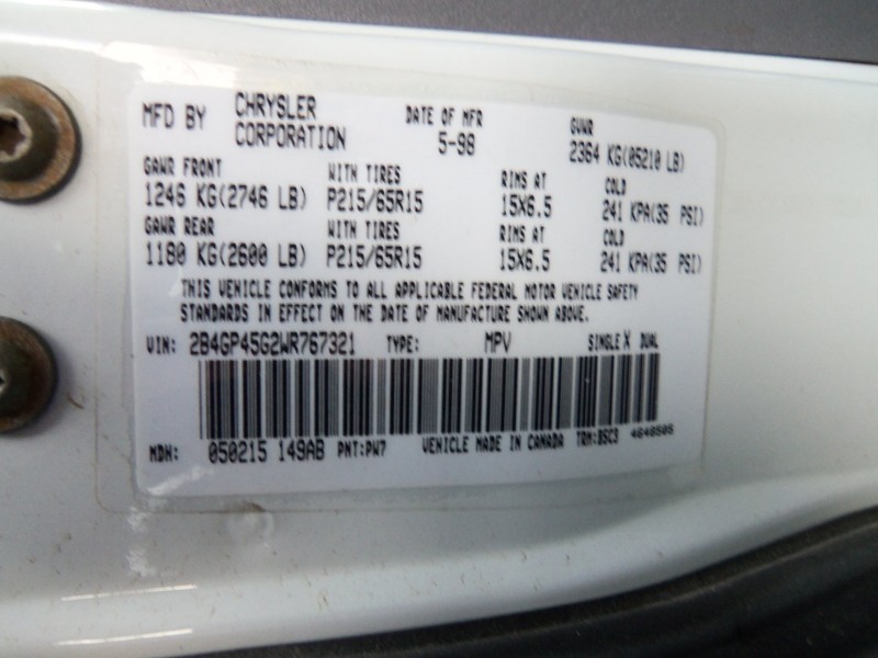 Vin# 2B4GP45G2WR767321 With 135,306 Miles.