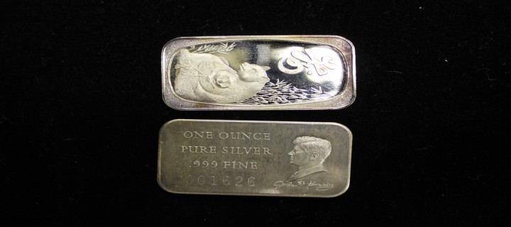 1-50 OUNCE .999 SILVER BAR AND 4-ONE OUNCE .999 SILVER INGOTS.
