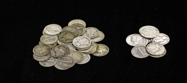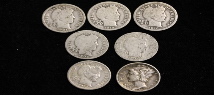 47-MERCURY DIMES COMMON MIXED DATES & MINT MARKS INCLUDING 1916P, 6-BARBER DIMES; 1901, 2-1905, 1912D, 1915, 1916, 1943.