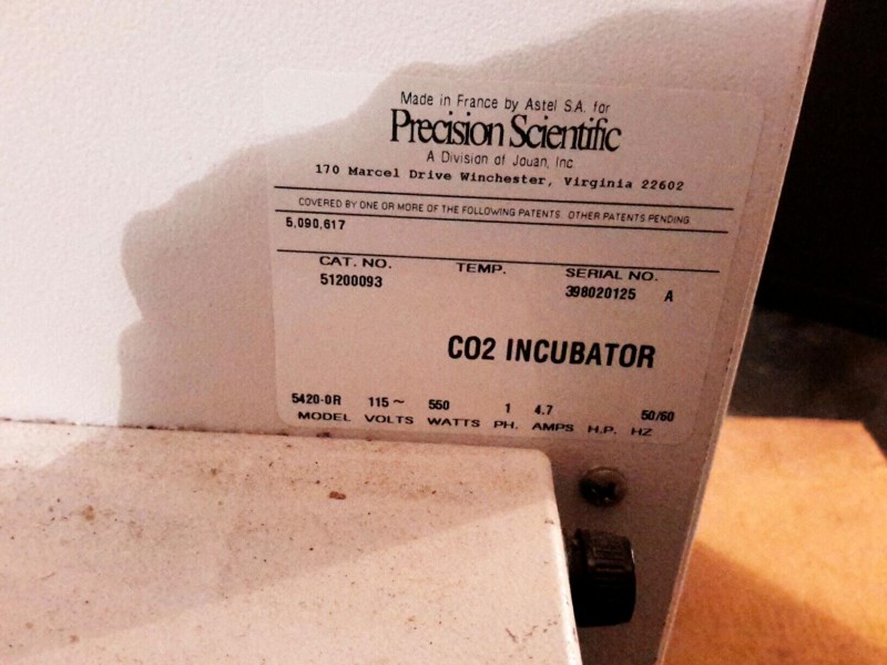 Description: 1 each Napco Series 5400 CO2 Incubator. Dimensions = 24 3/4"wx24 1/2"dx33 1/4"h