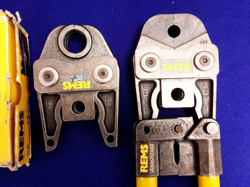 Description: 1 each REMS made in Germany ECO Press with two head attachments model U25 & U14.