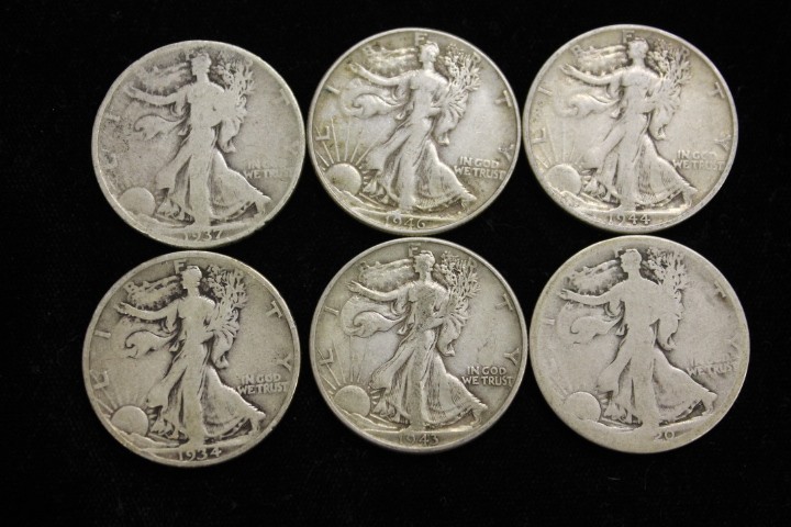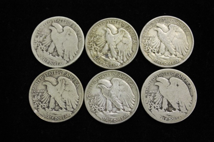 41-WALKING LIBERTY HALF DOLLARS; 1920D, 1929S, 2-1934, 2-1935, 1937, 1939S, 1940S, 4-1941, 1941D, 3-1942, 7-1943, 1943D, 2-1944, 1944D, 1944S, 5-1945, 2-1945D, 1945S, 2-1946, 2-UNREADABLE.
