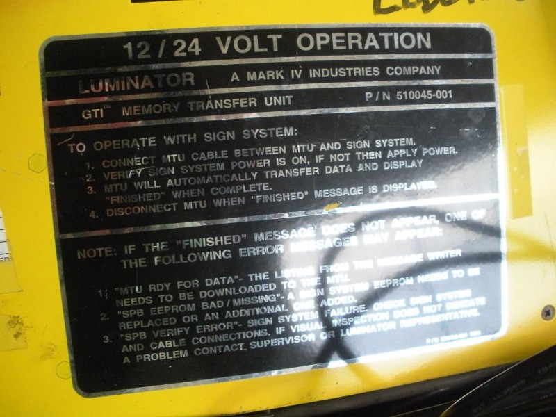 Three bus destination signs—one (1) front head sign and two (2) side signs. Front sign and one side sign are LED; 2nd side sign is flip dot. Signs come with programmers and user’s manuals. Sold as-is; condition unknown, although they were working when taken out of service. Lot also includes one EPROM Programmer with user’s manual and a cell phone car mount with amplifier and related components (condition unknown). All sold as one lot, as-is.