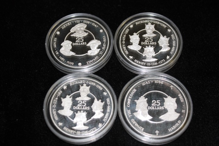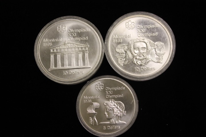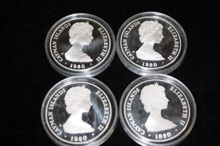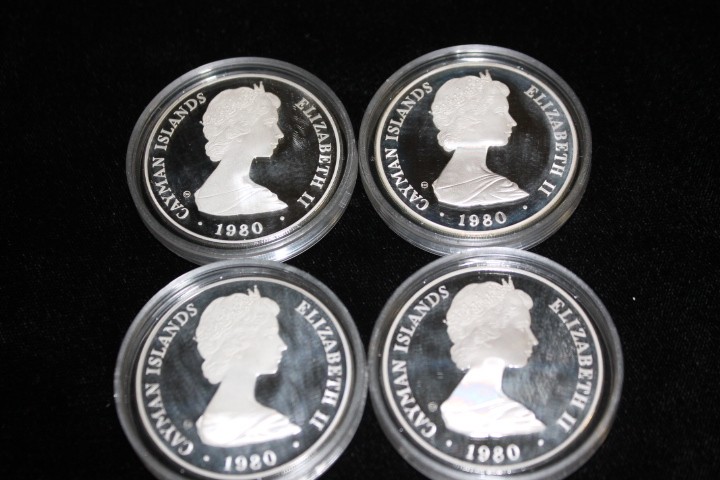 12-1980 CAYMAN ISLAND 25 DOLLAR .500 SILVER COINS, 3-10 DOLLAR & 1-5 DOLLAR CANADIAN OLYMPIC COINS.
