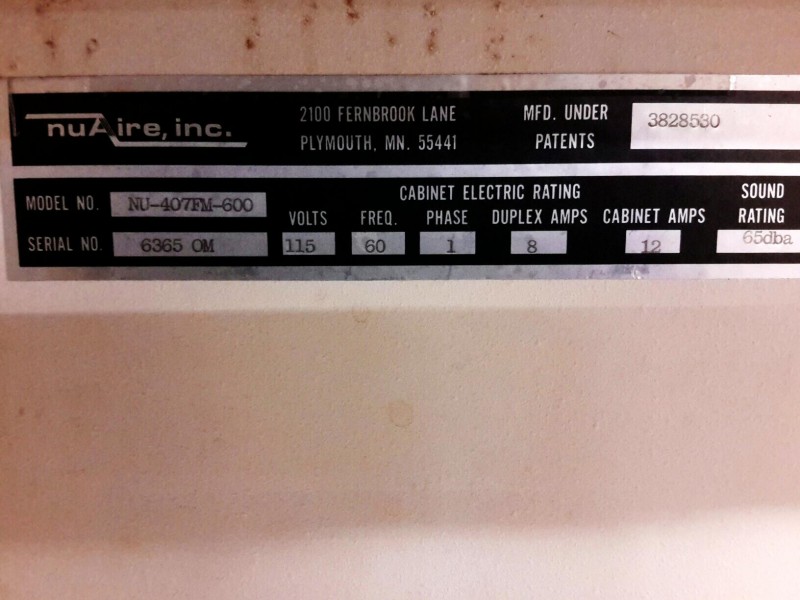 Description: 1 each NuAire Labgard Laminar Flow Biological Safety Cabinet. Dimensions = 74 3/4"wx30 1/4"dx81 1/2"h
