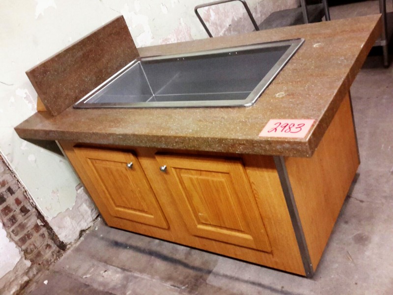 Description: 1 each buffet counter on wheels. Dimensions = 65 1/2"wx40"dx33 3/4"h