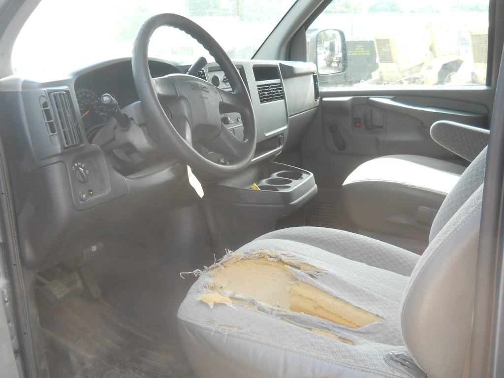 2002 GMC Savana Van (equipment 06382 Vin #1GTFG15T131145769 ), Blue Ext../ Grey Int., Starts - Moves Frontwards and Backwards, Check Engine Light Is On, Driver Seat Torn, No Back Seats, Has Air Condition - Works Fine, Inside Door Panel Rough, Automatic Transmission, 122,367 miles. There may be some holes on exterior and interior where equipment has been removed. Markings have been removed. Vehicle may be viewed at CMS State Surplus Warehouse, Springfield, ILLINOIS