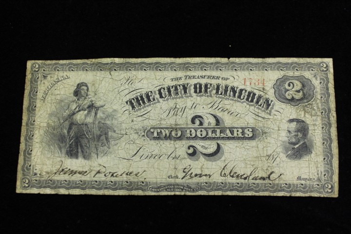 1-TWO DOLLAR CITY OF LINCOLN NEBRASKA NOTE.