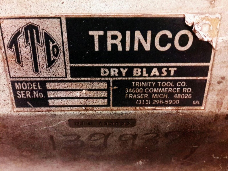 Description: 1 each Trinco dry blast cabinet unknown model. See picture gallery.