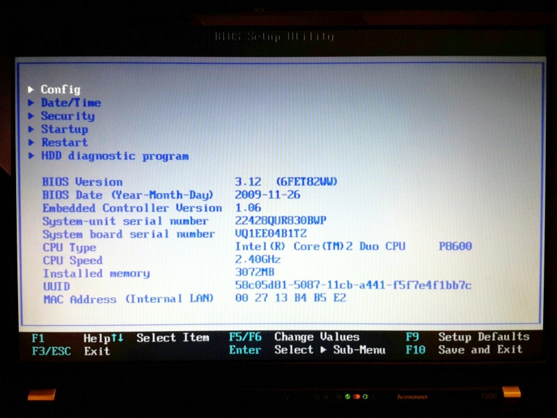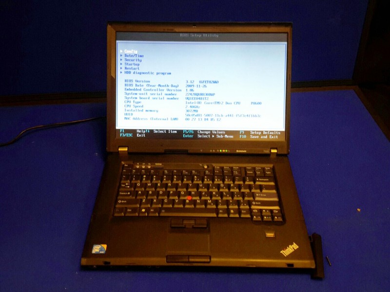 Description: 1 each Lenovo Thinkpad model T500 laptop, CPU 2.4ghz, Intel Core Duo P8600 with 2gb or more memory. Built in wireless card and DVD player. Laptop is gauranteed to work. Unit comes with battery, not gauranteed to work and power cord. No bag available. THIS UNIT HAS NO HARDDRIVE and/or SOFTWARE AVAILABLE. This unit is also sold by way of a generic stock photo in the picture gallery. The picture of the laptop used in this ad will not be the laptop you will recieve.