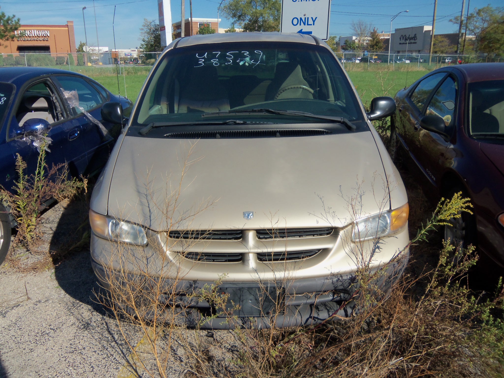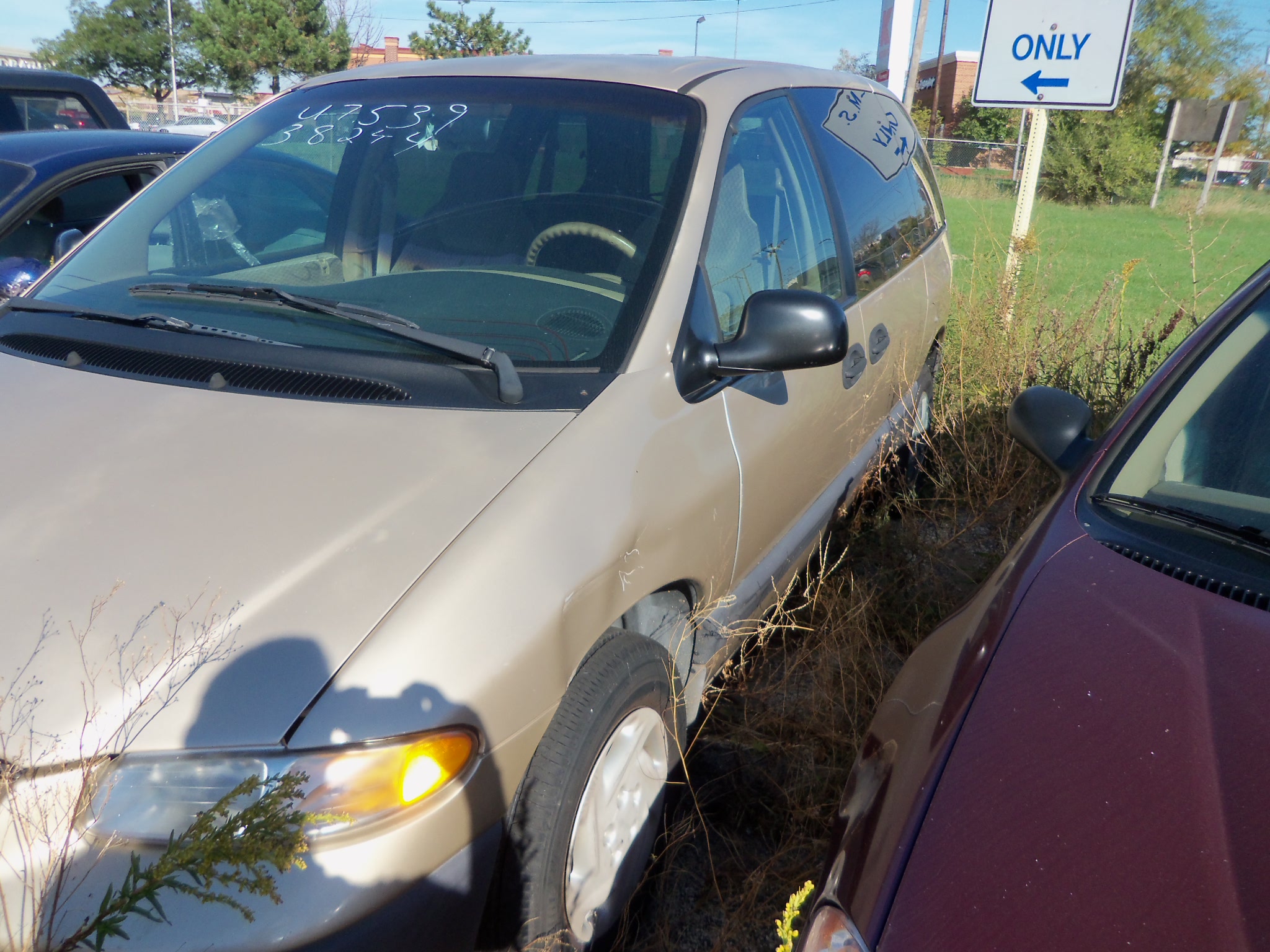 Equipment number 10-38244, a 1998 Dodge Minivan, tan. VIN: 2B4GP45G0WR805581. Vehicle is in poor condition with power steering, brakes and automatic transmission, air conditioning, AM/FM radio, all options may not work. Normal wear and tear expected with age and mileage. Also has minor dents and scrapes that may not be pictured.