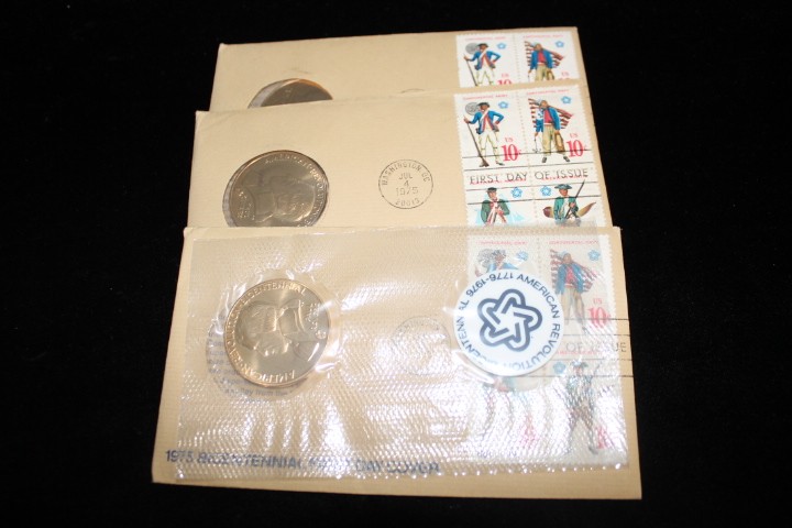 3-1973 BICENTENNIAL 1ST DAY COVERS WITH MEDALLIONS, 3-1975 BICENTENNIAL 1ST DAY COVERS WITH MEDALLIONS AND 1-1972 & 1-1974 BICENTENNIAL 1ST DAY COVERS WITH MEDALLION.