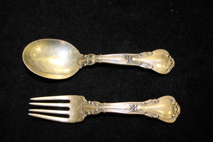 16-STERLING SPOONS 276.0 GRAMS TL WT, 1-GORHAM STERLING CHILDS FORK & SPOON 49.3 GRAMS TL WT, 2-STERLING SPOONS 31.9 GRAMS TL WT AND 1-MARY PICKFORD SPOON.