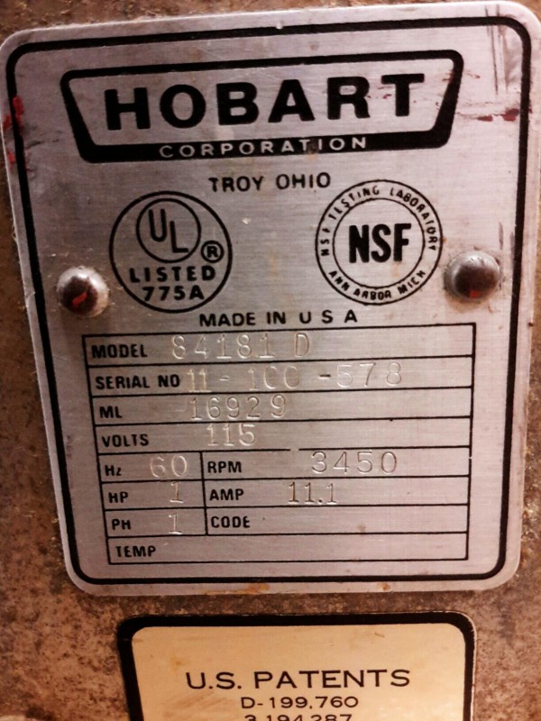 Description: 1 each Hobart commercial food chopper model 84181 D. See picture gallery.