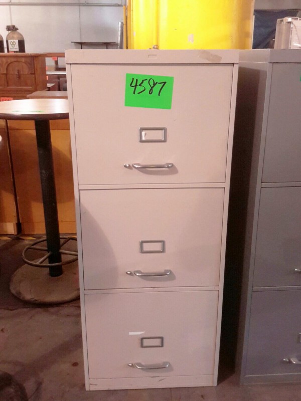 Description: 1 each 3 drawer file cabinet. Dimensions = 21 3/8"wx28"dx52 1/8"h