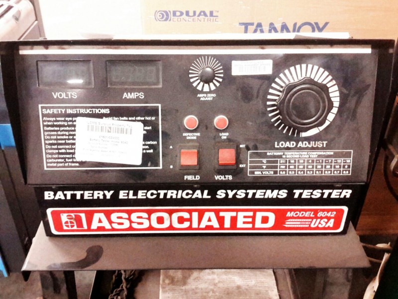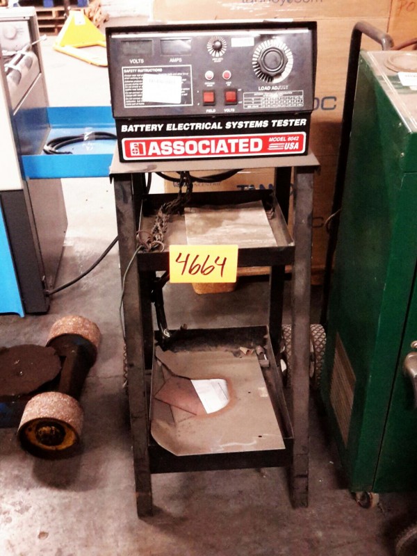 Description: 1 each Associated battery electrical systems tester model 6042. This unit is labeled as broken and will need to be repaired, unit has a nice cart though. See picture gallery.