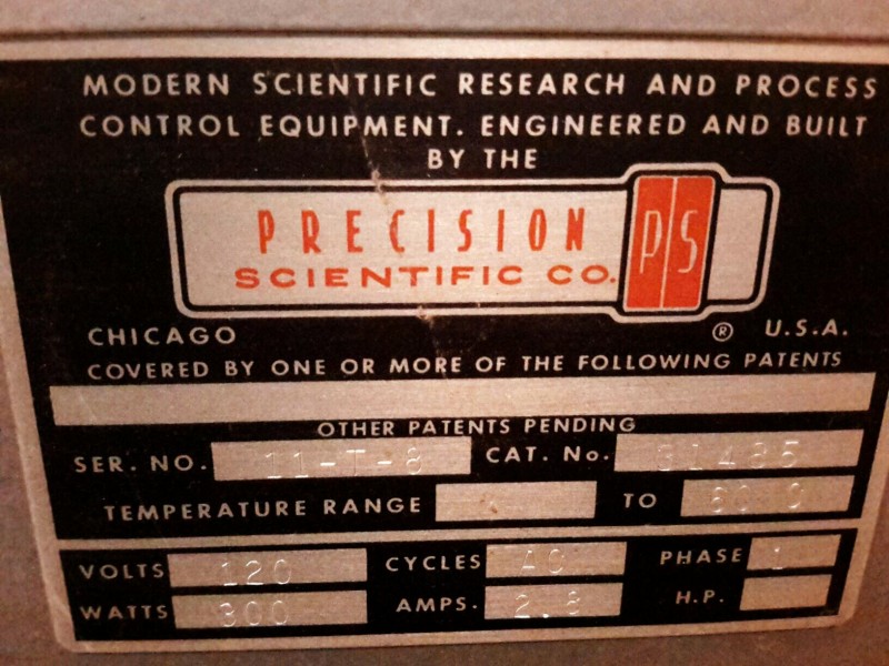 Description: 1 each Thelco Precision Model 6 Incubator Oven. Dimensions = 42 1/2"wx21"dx38"h