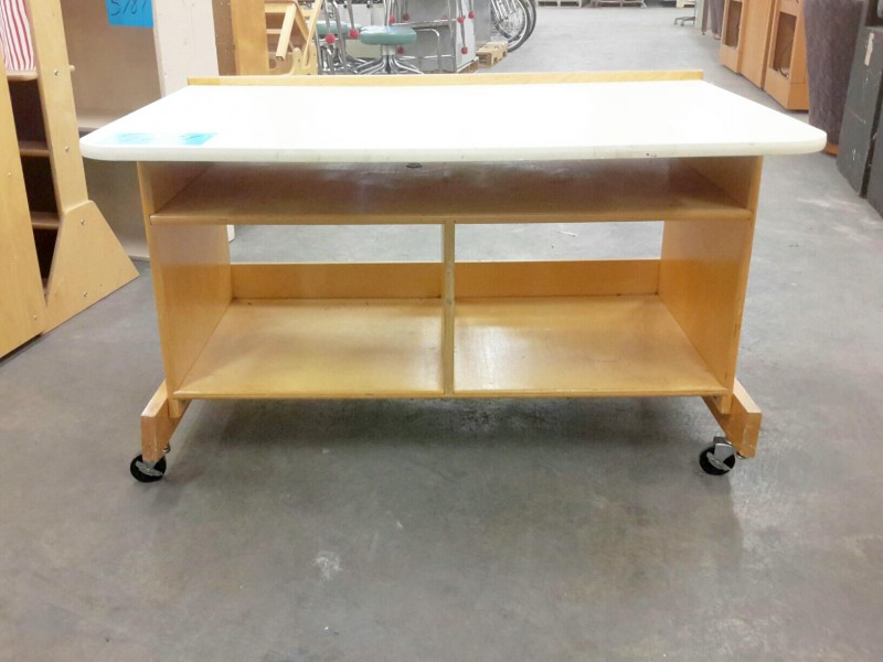 Description: 1 each table on wheels. Dimensions = 42"wx28 1/2"dx25 3/8"h