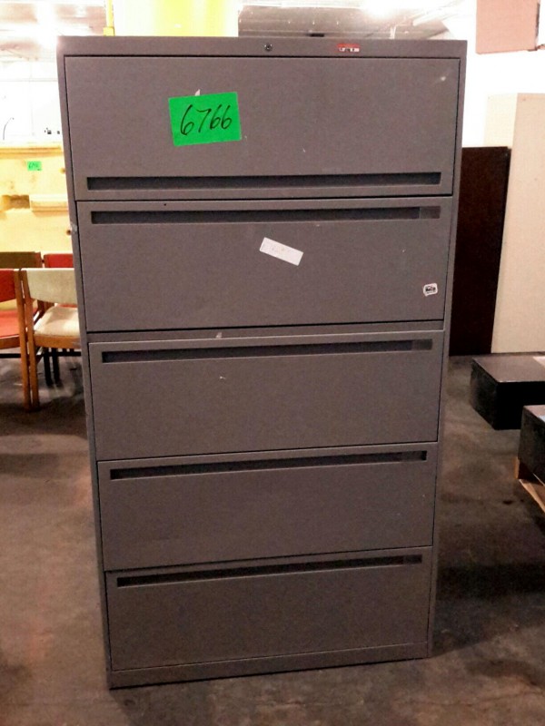 Description: 1 each 5 drawer lateral file cabinet. Dimensions = 36"wx18"dx65"h