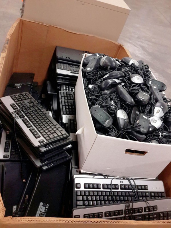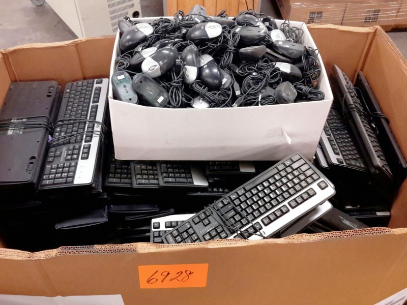 Description: 1 each big box of keyboards both PS2 and USB and 1 each box of mice. Mice appear to be USB. See picture gallery.