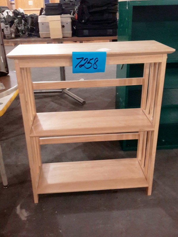 Description: 1 each wood bookshelf. Dimensions = 29 5/8"wx12 1/4"dx34 3/8"h