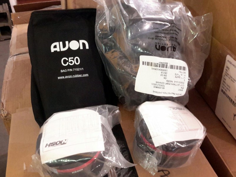 Description: 1 each table lot consisting of Avon gas masks and canisters. See picture gallery.