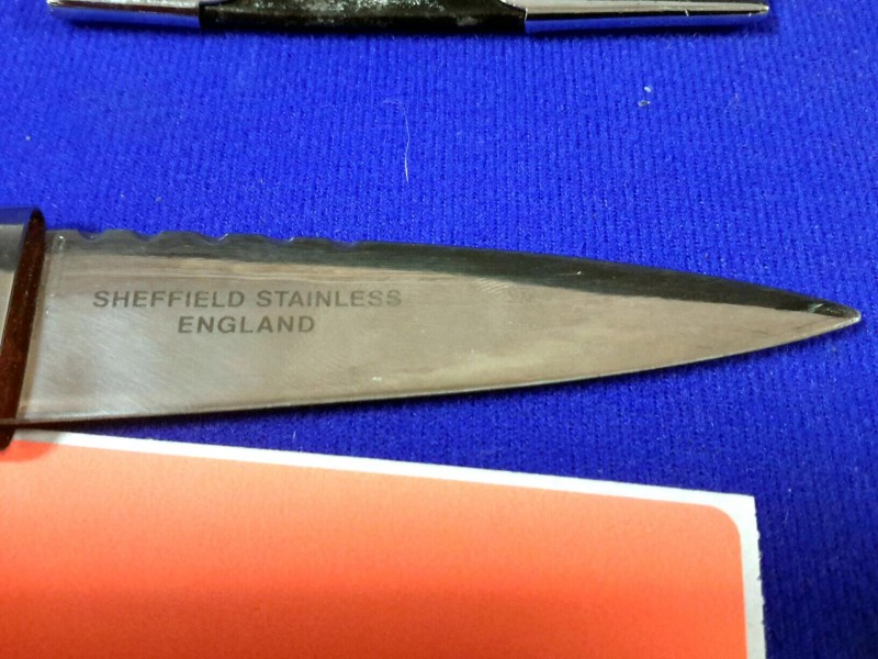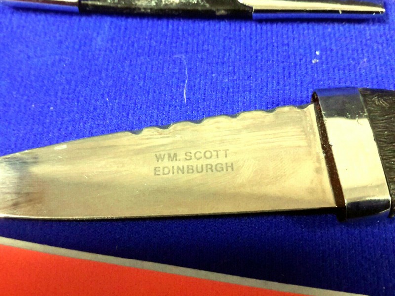 Description: 1 each Sheffield Stainless England W.M. Scott Edinburgh fixed blade knife. See picture gallery.