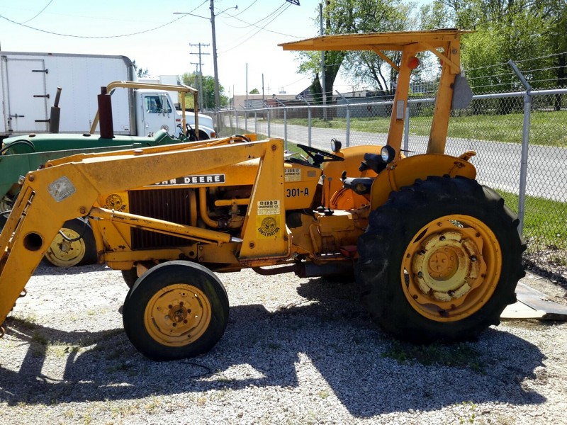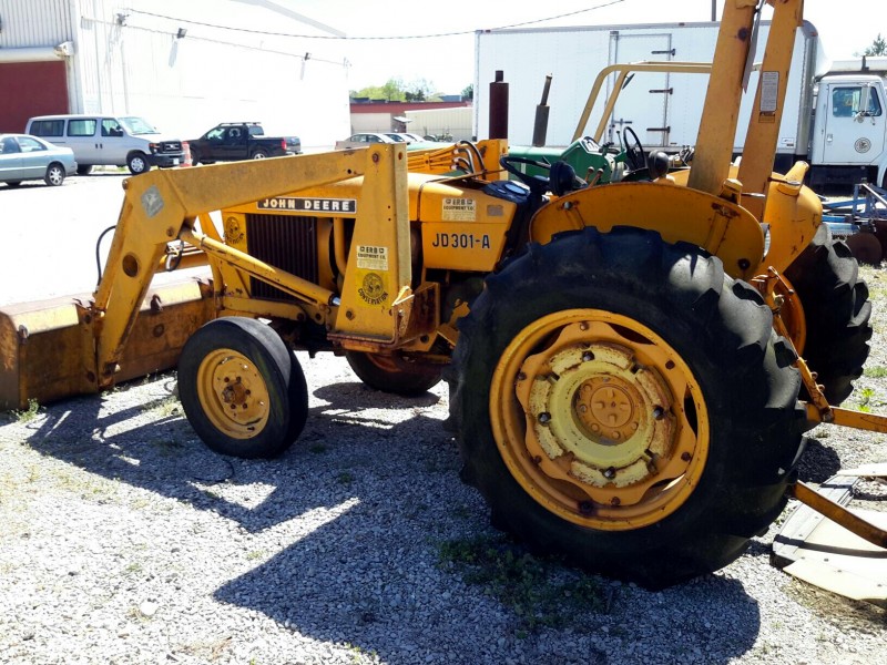 Description: 1 each John Deere JD301-A tractor with bucket.