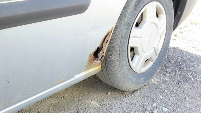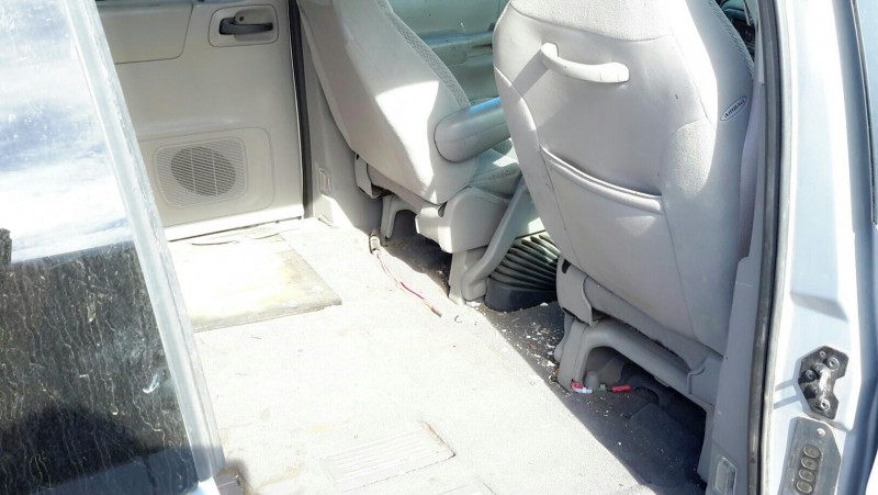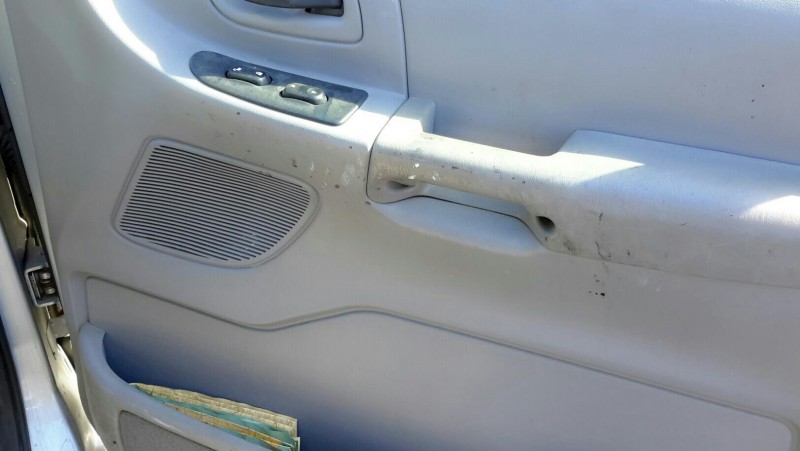 Exterior: Paint is in overall good condition, no large peeling and no unusual fading. Normal dents, dings and scratches as consistent with vehicle age, mileage and use. Some rust through and surface rust was noted on driver side rear wheelwell. Decal and sticker remnants may remain on paint. Other small paint flaking and some surface rust may be present. No major damage was noticed on walk around. Unable to open driverside sliding door. There may be holes from removal of communication antennas and equipment on roof and trunk lid.