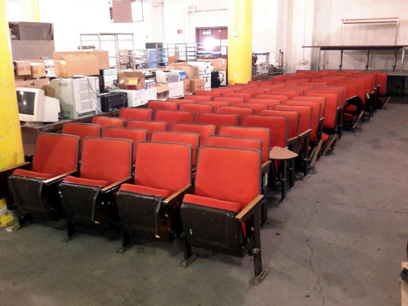 Description: This auction is for one row of theater/auditorium chairs with four seats in a row. This lot is being auctioned off by way of a generic picture of the chairs. Our staff will pick the row closest to the front for the winning bidder.