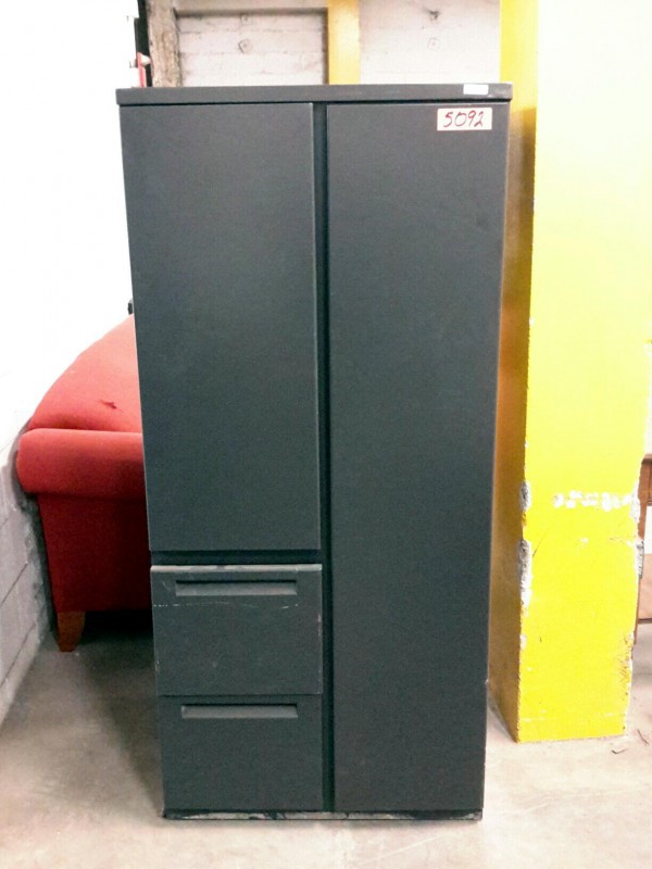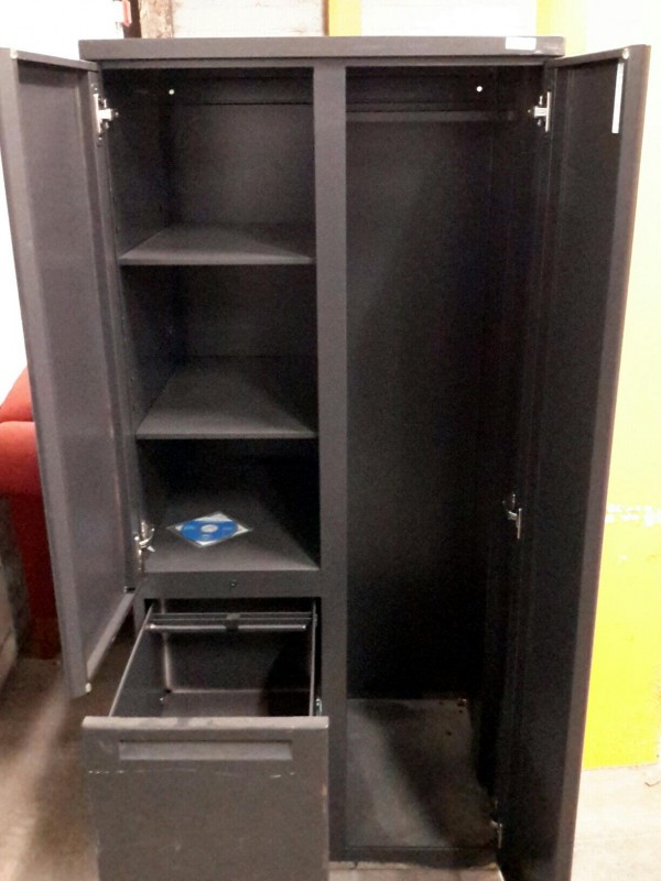 Description: 1 each storage cabinet. Unit has two drawers for filing, 1 side with shelves for storage and the other side is like a locker.