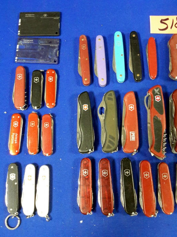 Description: Lot consisting of 36 each Victorinox pocket knives & wallet Swiss Card multi-tools.