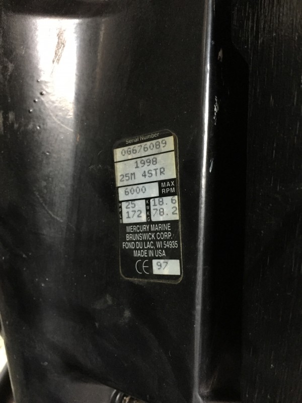 This listing is for a Mercury 1998 Boat Motor 25M 4STR. The motor is in good working condition and can be used with the Zodiac boat listed separately.