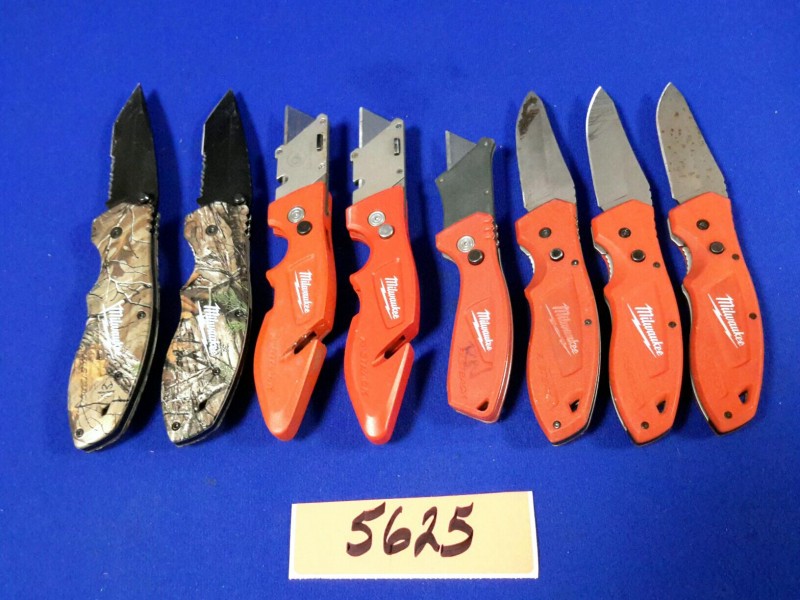 Description: Lot consisting of 5 each Milwaukee pocket knives and 3 each Milwaukee utility knives.