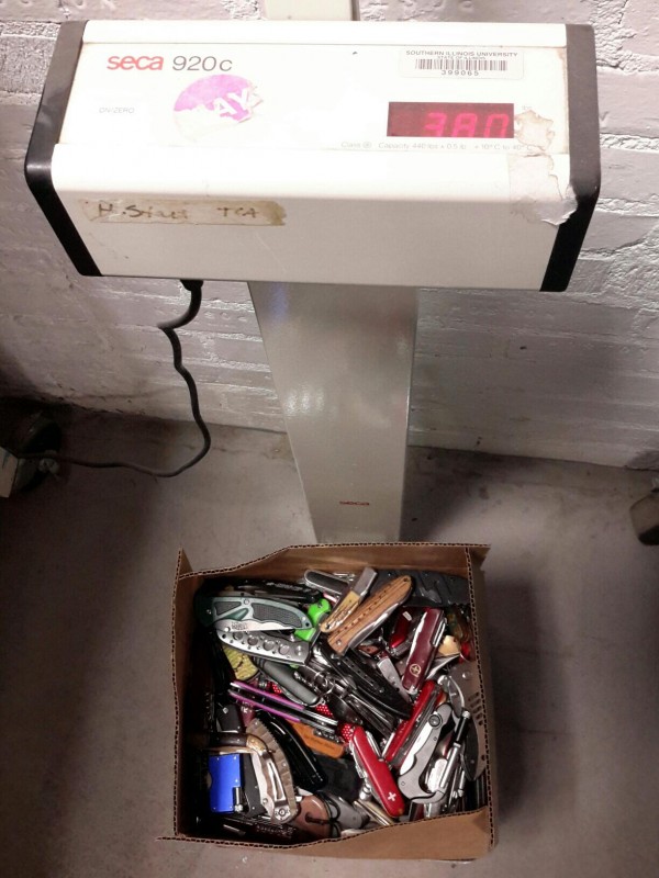 Description: 1 each 38lb box consisting of miscellanous pocket knives.