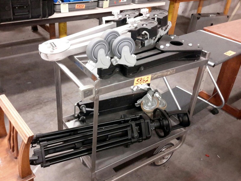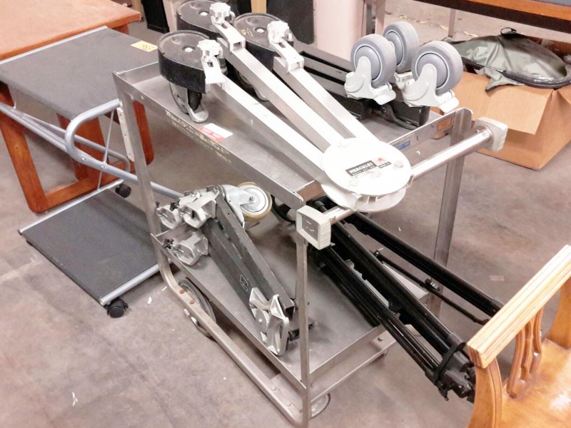 Description: 1 each Imperial stainless steel cart with 4 each miscellaneous tripods.