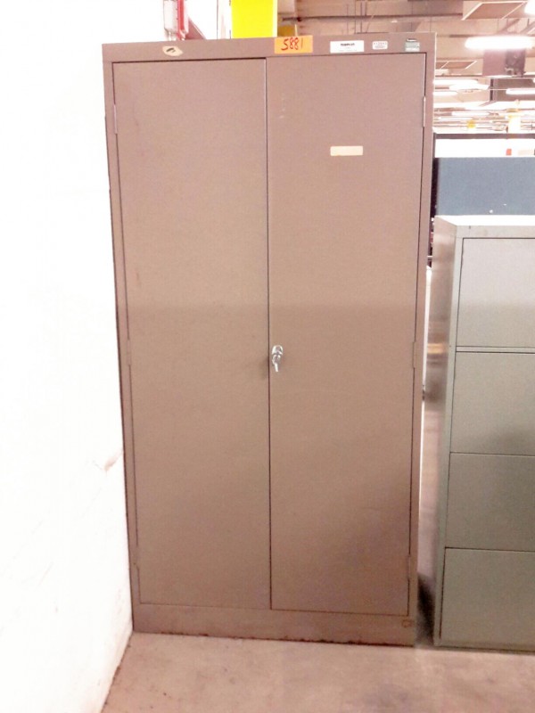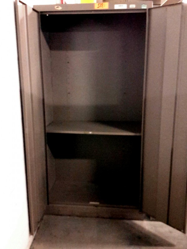 Description: 1 each Tennsco metal storage cabinet. The cabinet has a broken handle, but still works.