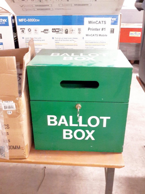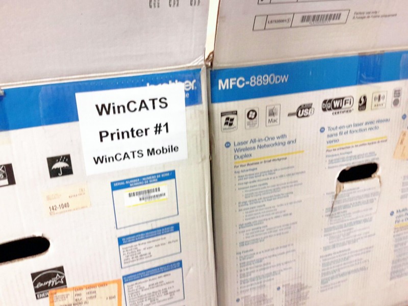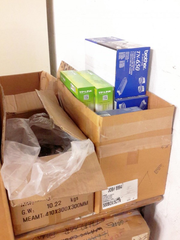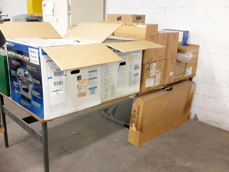 Description: 1 each table lot consisting of 1 each ballot box, numerous boxes of display port to DVI cables, 2 each Brother model MFC-8890dw all-in-one printer, and other.