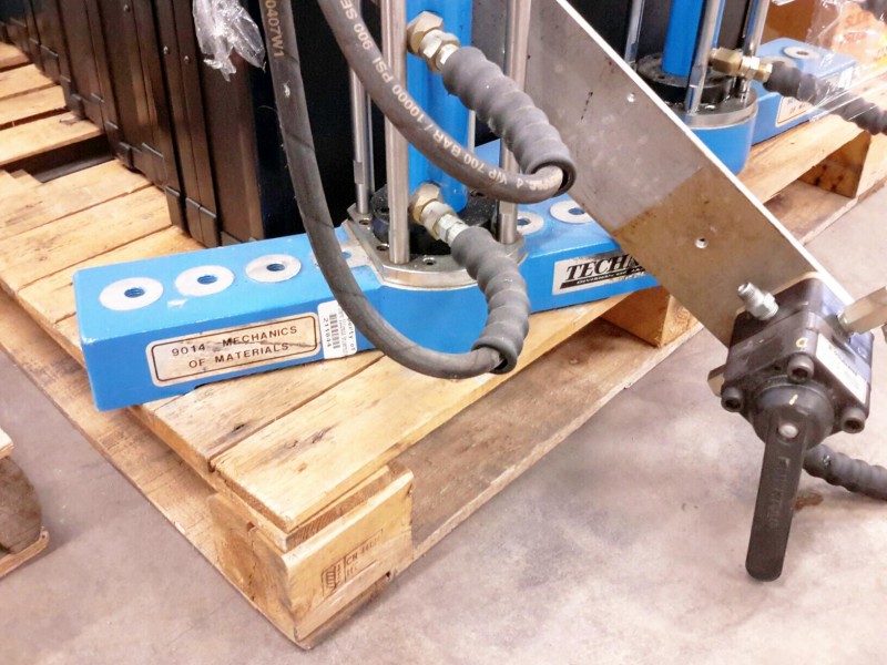 Description: Pallet consisting of 4 each Technovate 9014 Mechanics of Materials testing equipment with manual hydraulic pumps and 6 each cases of accessories.