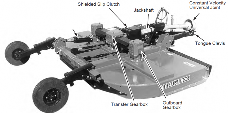 Description: 1 each Bush Hog 3210 PTO driven mower deck. This unit is missing the wheels, tongue clevis, and the constant velocity universal joint. (REVISED) This listing is being revised to reflect the parts previously listed as missing are now part of the listing. See additional pictures added 10-18-17.