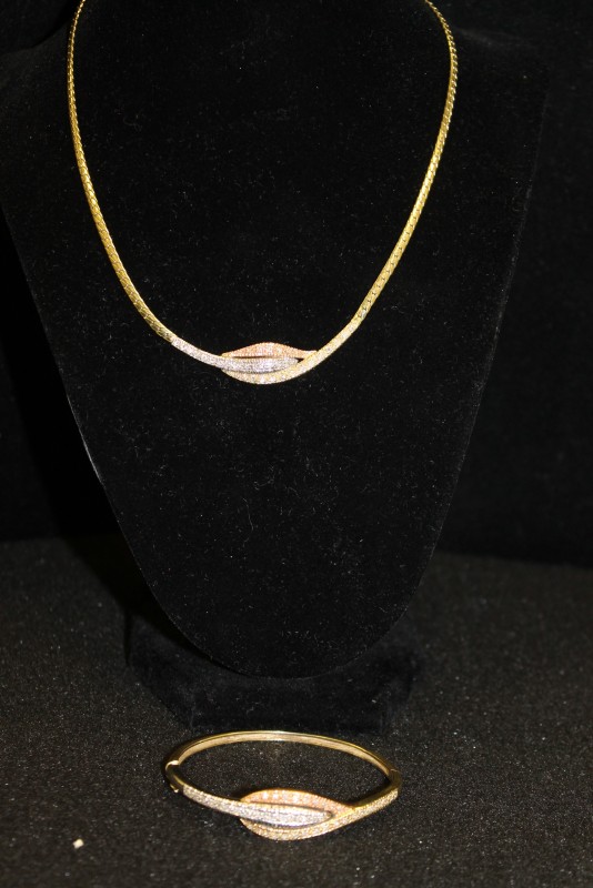 LOT 49 - 14K DIAMOND NECKLACE & BRACELET SET; 14K MULTI-COLORED GOLD WITH SMALL DIAMONDS 38.0g TL WT.