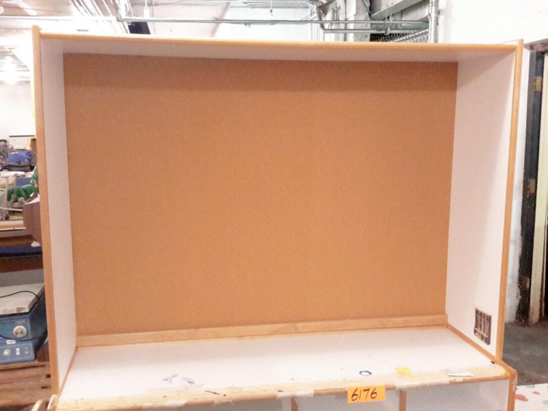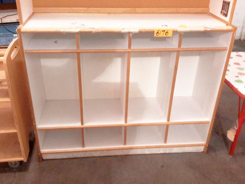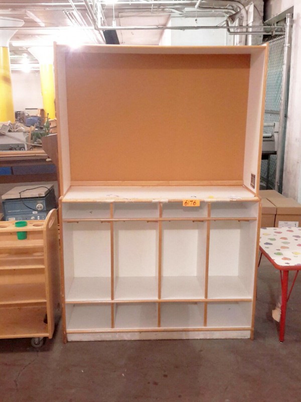 Description: 1 each 4 bay toddler locker with upper corkboard back top.