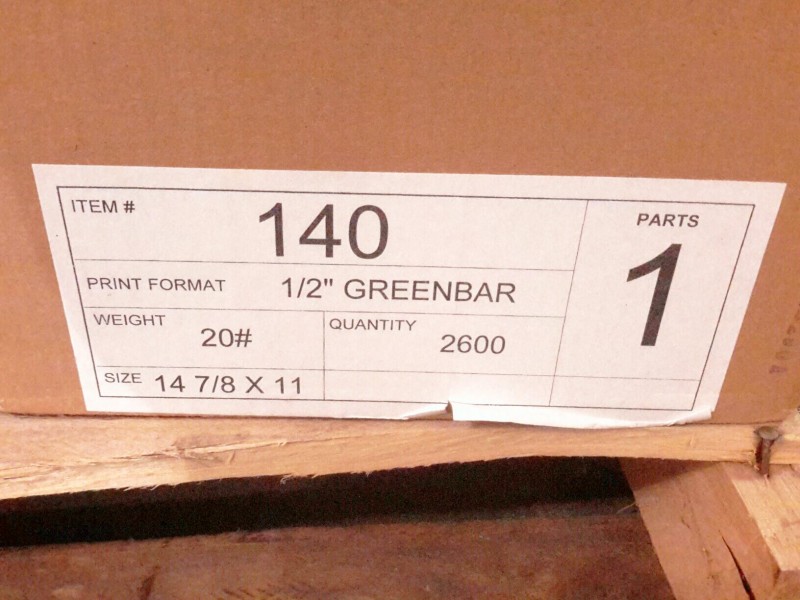 Description: Lot consisting of 5 each 1/2" greenbar paper.