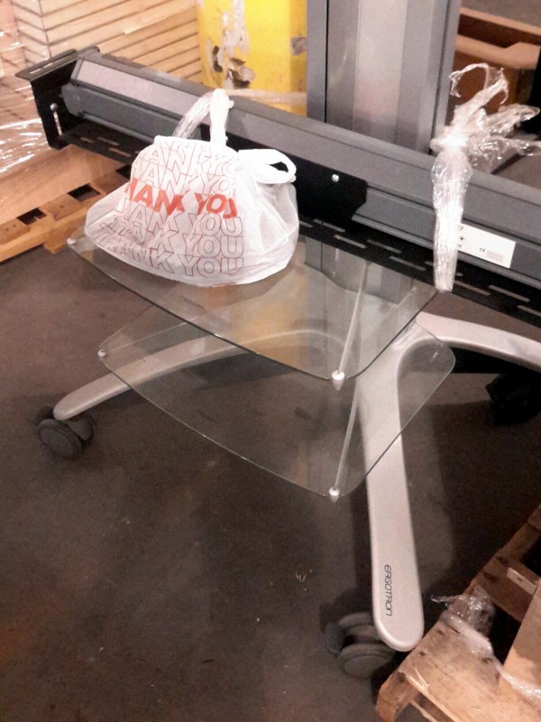 Description: Lot consisting of 1 each Ergotron a/v cart with glass shelves and 1 each Smartboard with accessories in the bag.