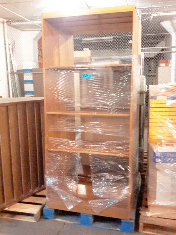 Description: 1 each pallet consisting of 2 each wooden shelving units. These are the type with no back that you load from each side.