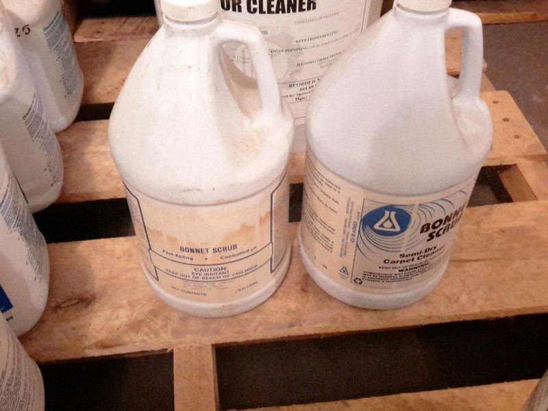 Description: 1 each pallet consisting of miscellaneous floor cleaning chemicals such as floor stripping, cleaning, and protecting. Some of the containers have been opened and used, but all have something in them.
