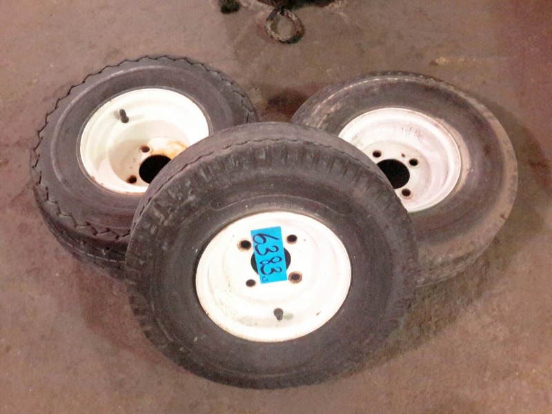 Description: Lot consisting of 3 each 4 lug trailer rims and tires.