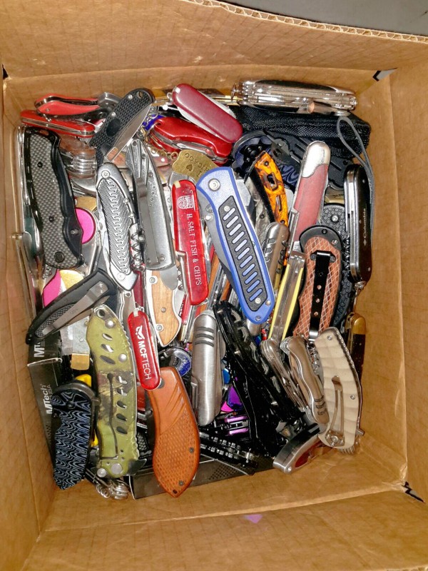 Description: 1 each 30lb box consisting of miscellaneous pocket knives.