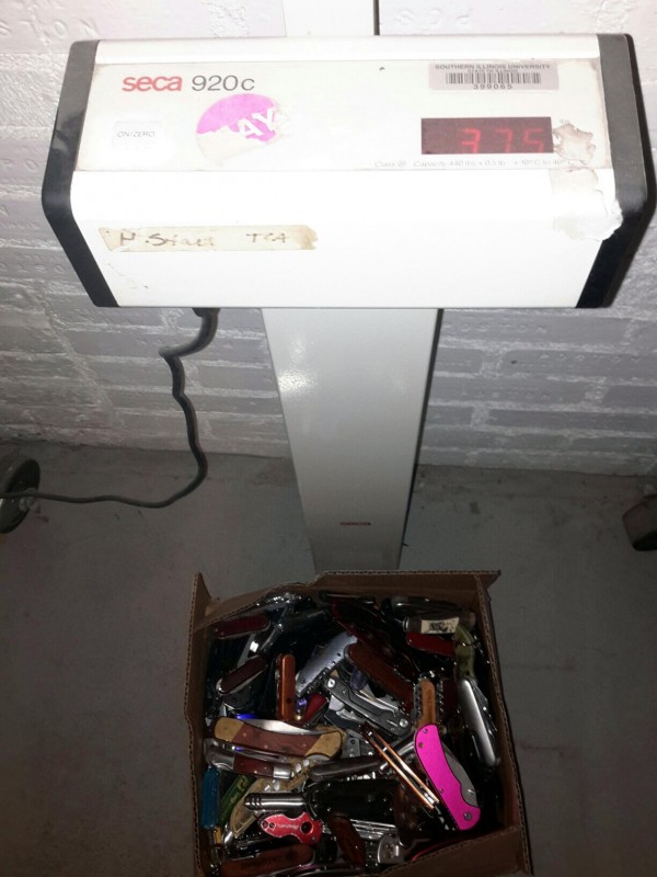 Description: 1 each 37lb box consisting of miscellaneous pocket knives.